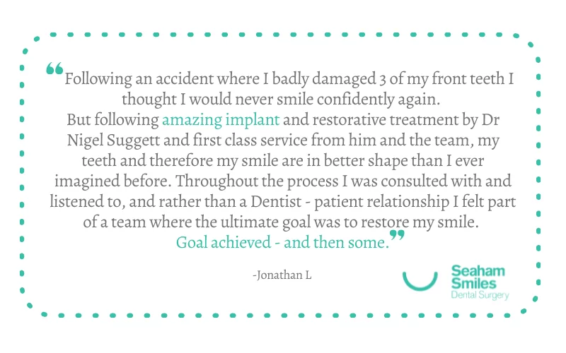 Had my dental implant at Seaham smiles done by Nigel. Everything was clearly explained and the cost was competitive. It was a complex job as I had a crown and bridge there already but Nigel did a fant... Read More