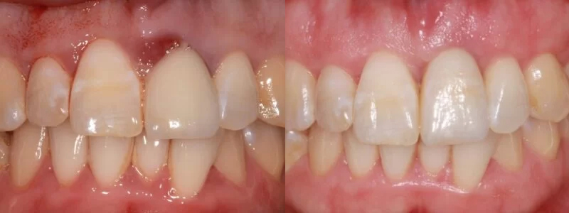 After a few years the tooth needed to be removed as it became infected. Nigel removed the tooth and placed a dental implant and attached a new temporary tooth on the implant all on the same day. This meant the patient didn’t have to have a gap or a removable tooth.