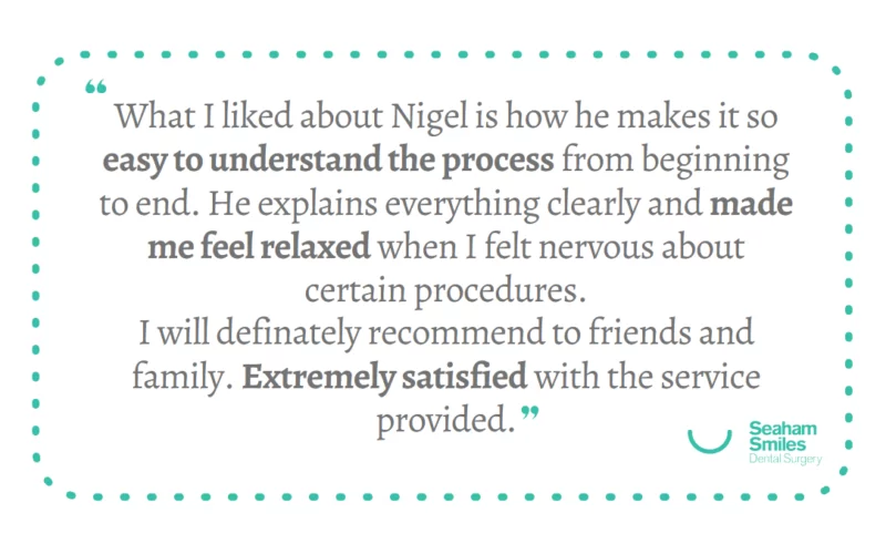 Had my dental implant at Seaham smiles done by Nigel. Everything was clearly explained and the cost was competitive. It was a complex job as I had a crown and bridge there already but Nigel did a fant... Read More