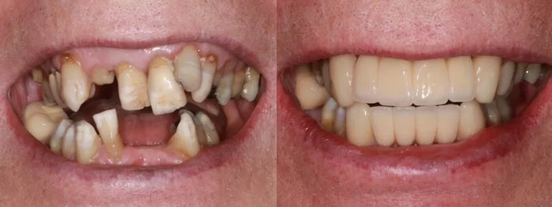 Nigel extracted the patients upper and lower front teeth and placed dental implant bridges alongside veneers on his canine teeth. What an amazing transformation!