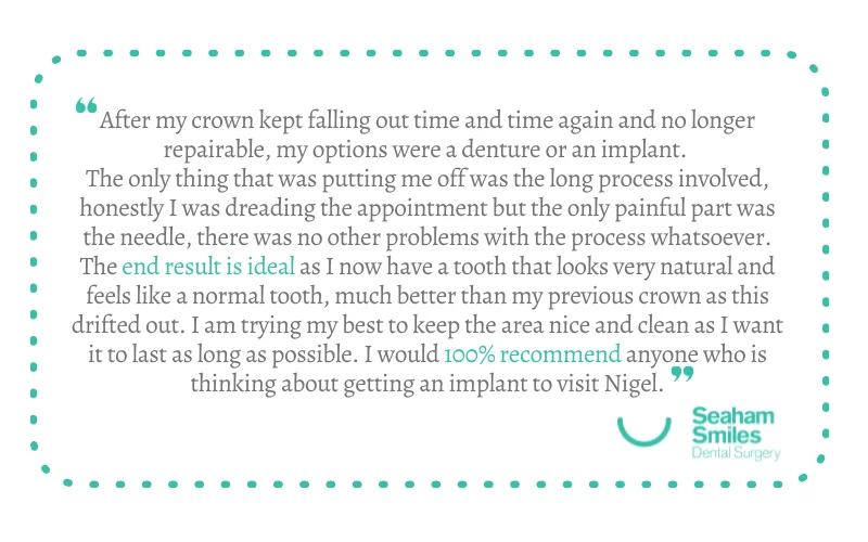 My bridge fractured which required me needing a dental implant. I felt really apprehensive about this. Nigel & Ellie were fantastic and explained everything in layman’s terms which gave me so much r... Read More